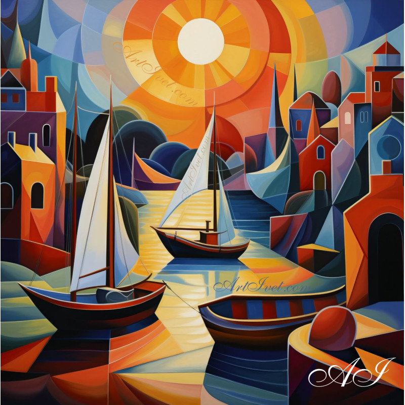 Рисуване по номера - ЛОДКИ АБСТРАКТ40х40 см.