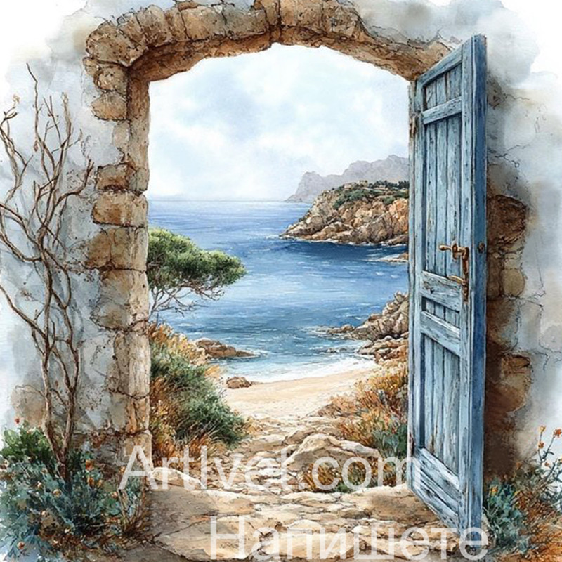 Рисуване по номера - ВРАТА КЪМ МОРЕТО 40х40 см.
