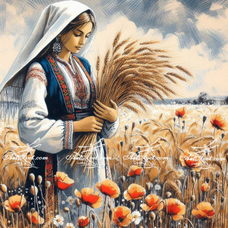 Рисуване по номера - ДЕВОЙКА СРЕД ЖИТНИТЕ НИВИ 40х40 см.