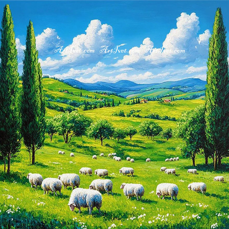 Рисуване по номера - ВАКЛО СТАДО НА ПАША 40х40 см.