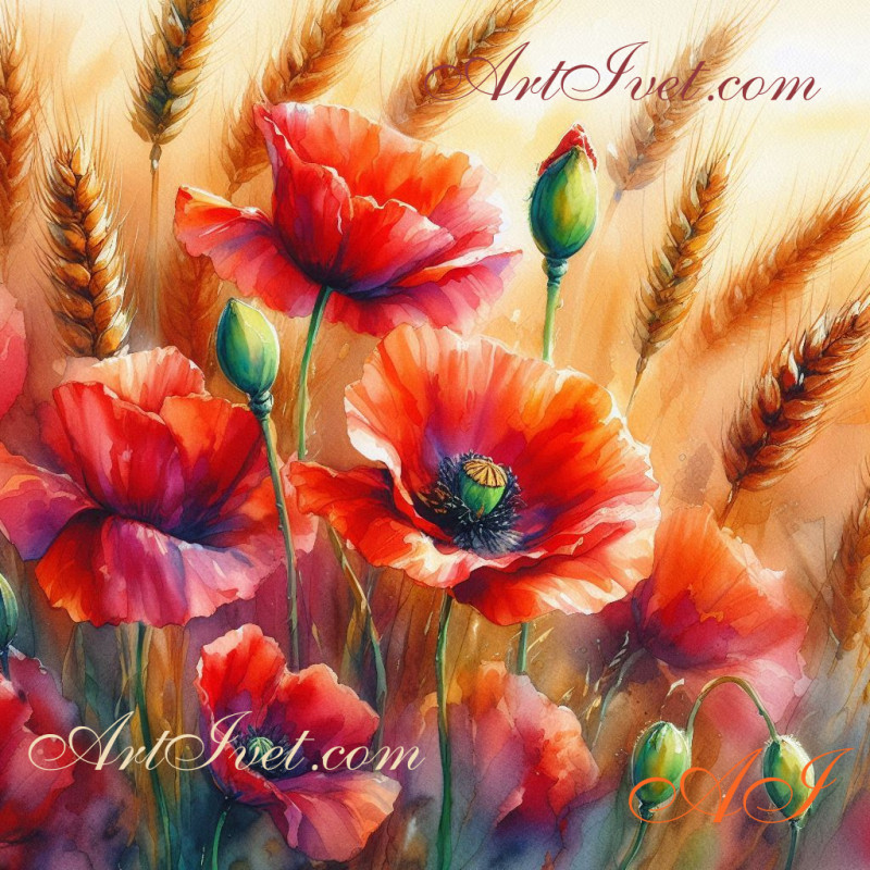 Рисуване по номера - МАКОВЕ СРЕД ЖИТАТА 40х40 см.