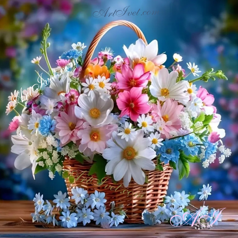 Рисуване по номера НЕЖНИ ЦВЕТЯ В КОШНИЦА 40х40 см.