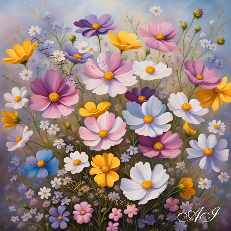 Рисуване по номера - ОБАЯТЕЛНИ ЦВЕТЯ 40х40 см.