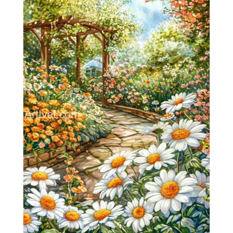 Рисуване по номера - ПЪТЕКА В ЦВЕТНА ГРАДИНА