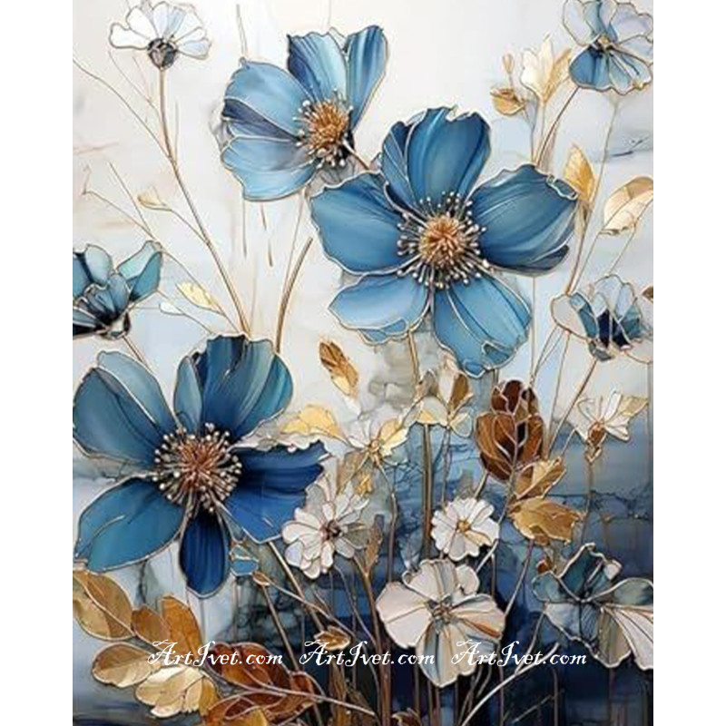 Рисуване по номера - ЦВЕТЯ СЪС СИНИ ВЕНЧЕЛИСТЧЕТА