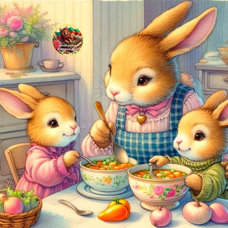 Рисуване по номера - НА ВЕЧЕРЯ ПРИ МАМА ЗАЙКА 40х40 см.