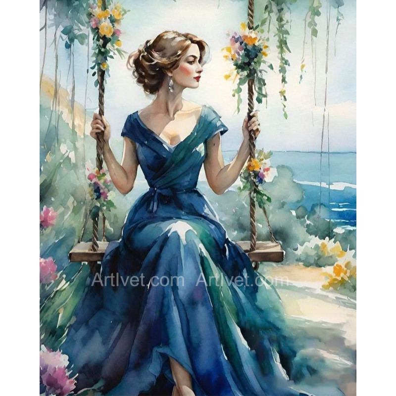 Рисуване по номера - КРАСИВА ДАМА НА ЛЮЛКА