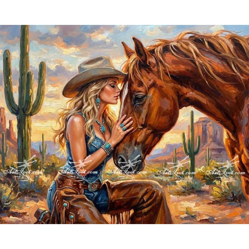 Рисуване по номера - РАЙ В ТЕКСАС - ЕЗДАЧКА И КОН ВАРИАНТ 2 - 40х50см.