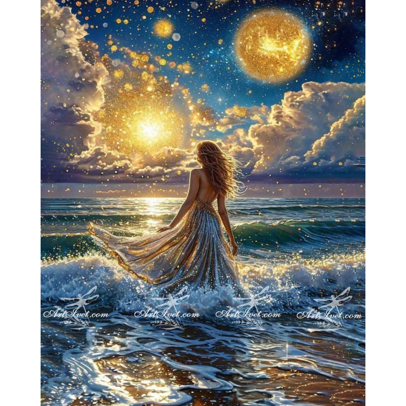 Рисуване по номера - РОДЕНА ОТ МОРСКА ПЯНА И ЗВЕЗДНИ ИСКРИ - 40х50см.