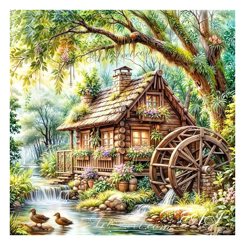 Рисуване по номера -ВОДЕНИЦА В ГОРАТА 40х40 см.