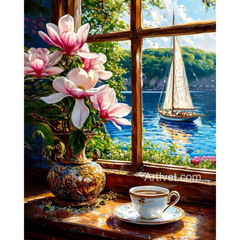 Рисуване по номера - МАГНОЛИИ ДО ПРОЗОРЕЦА