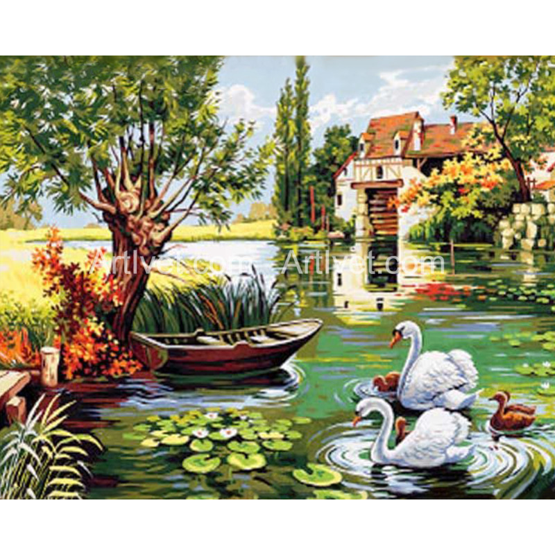 Рисуване по номера - ЕЗЕРО С ЛЕБЕДИ