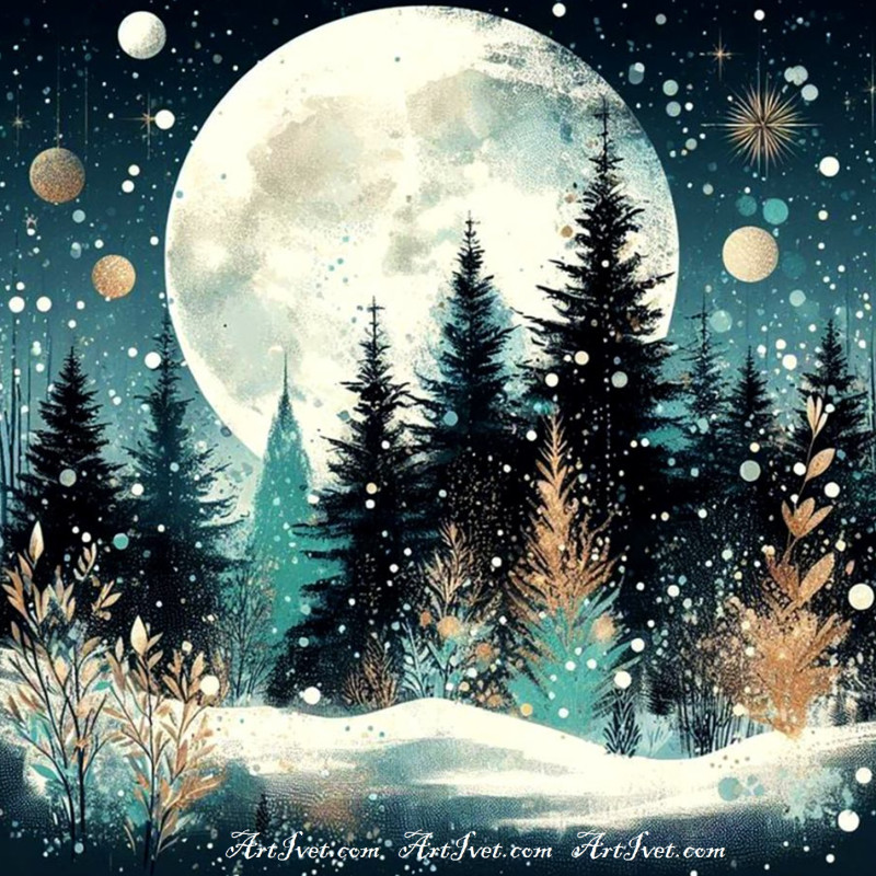 Рисуване по номера - СНЕЖНА ЛУНА ПРЕЗ ФЕВРУАРИ 40х40 см.