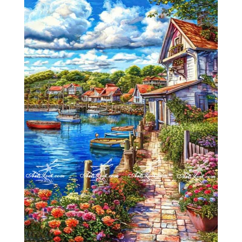 Рисуване по номера - КРАЙБРЕЖНАТА УЛИЦА С ЦВЕТЯТА - 40х50см.