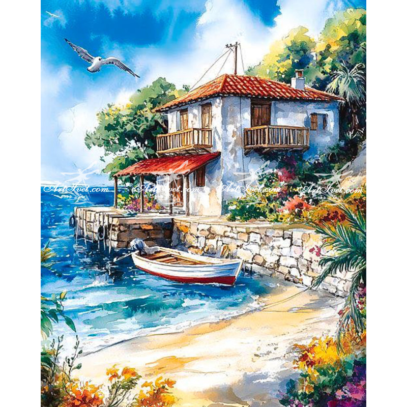 Рисуване по номера - ЗАКЪТАНОТО ЗАЛИВЧЕ ЗА ЛОДКИ - 40х50см.