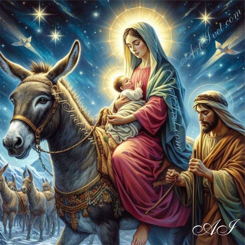 Рисуване по номера - ПЪТЯТ НА СВЕТОТО СЕМЕЙСТВО 40х40 см.