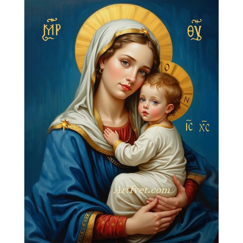 Рисуване по номера - ДЕВАТА С МЛАДЕНЕЦА - СИНЯ ТОПЛИНА