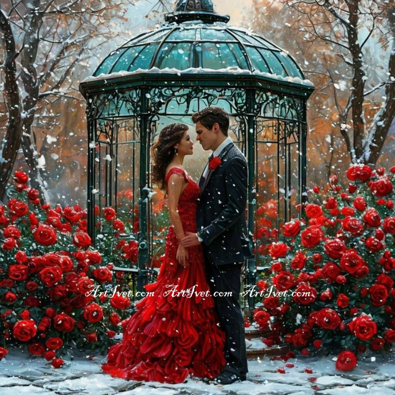 Рисуване по номера - СНЕЖНА ПРИКАЗКА - ДВАМА ВЛЮБЕНИ 40х40 см.