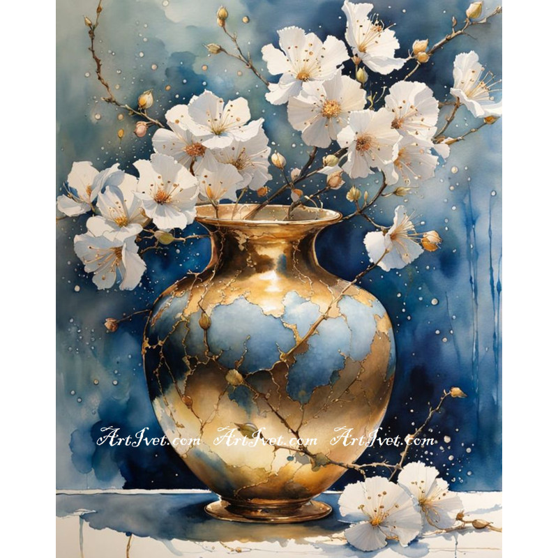 Рисуване по номера - ПОЗЛАТЕНАТА ВАЗА С ЦВЕТЧЕТА